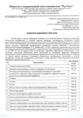 Информационное письмо на продукцию не подлежащую обязательному подтверждению соответствия